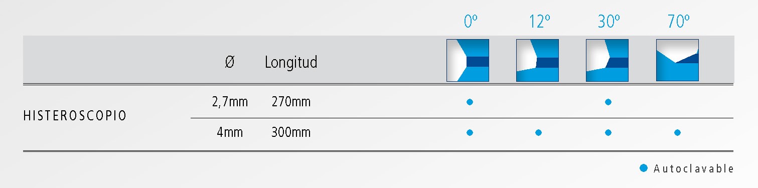 - Histeroscopios fabricados bajo normas “ISO 9001” y testeados con el más moderno sistema de control óptico computarizado (MTF).